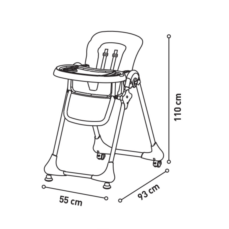 A tálca kiesésgátlóval van összeépítve, mely megakadályozza a gyermek kicsúszását az etetőszékből.