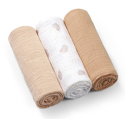 BabyOno Extra puha textil pelenka 3 db gyűrt muszlin - bézs