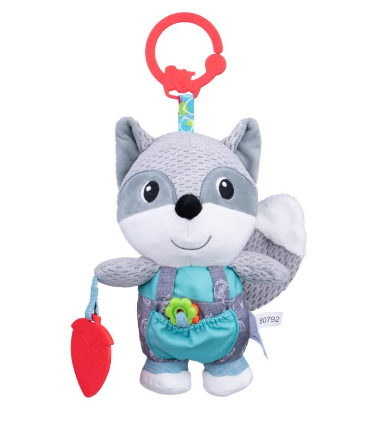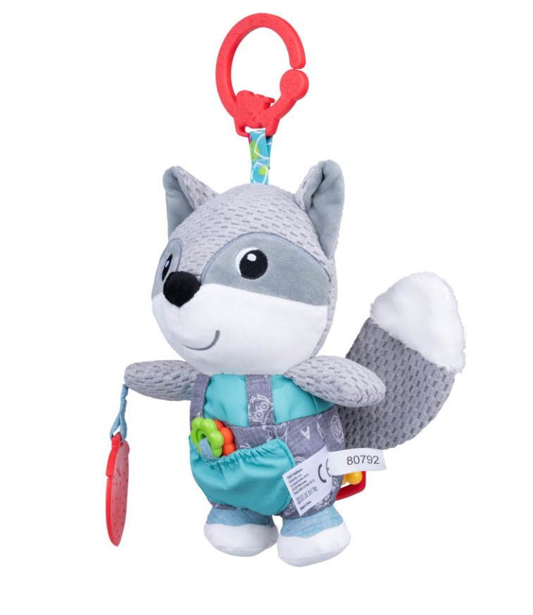 Félix különböző textúrájú anyagokból készült, hogy fejlessze a baba érzékszerveit. Fülei és farka vidáman zizegnek, míg a pocakján egy kis zseb található, amelyben színes, különböző formájú rágókák bújnak meg. Egy extra puha eper alakú rágóka is csatlakozik a játékhoz, ami különösen hasznos a fogzási időszakban.