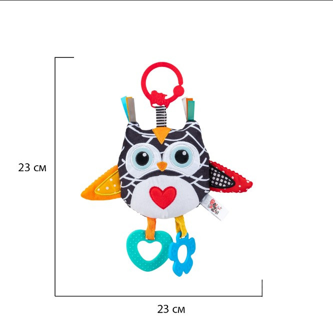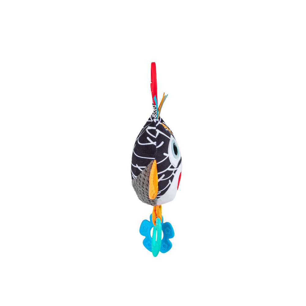 Rögzítő karika – egyszerűen felakasztható babakocsira, kiságyra vagy hordozóra, így Nela mindig a baba mellett lehet.Vidám, kontrasztos design – felkelti a kicsi figyelmét és serkenti a vizuális érzékelést.