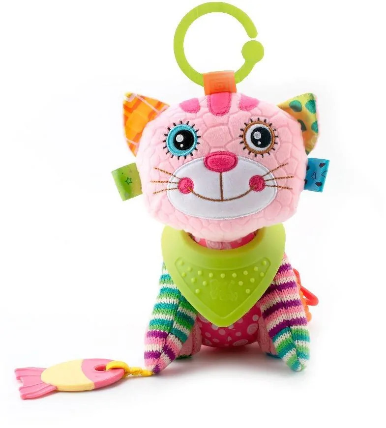 Csíptethető cica plüssjáték – egyszerűen rögzíthető babakocsira, kiságyra, hordozóra