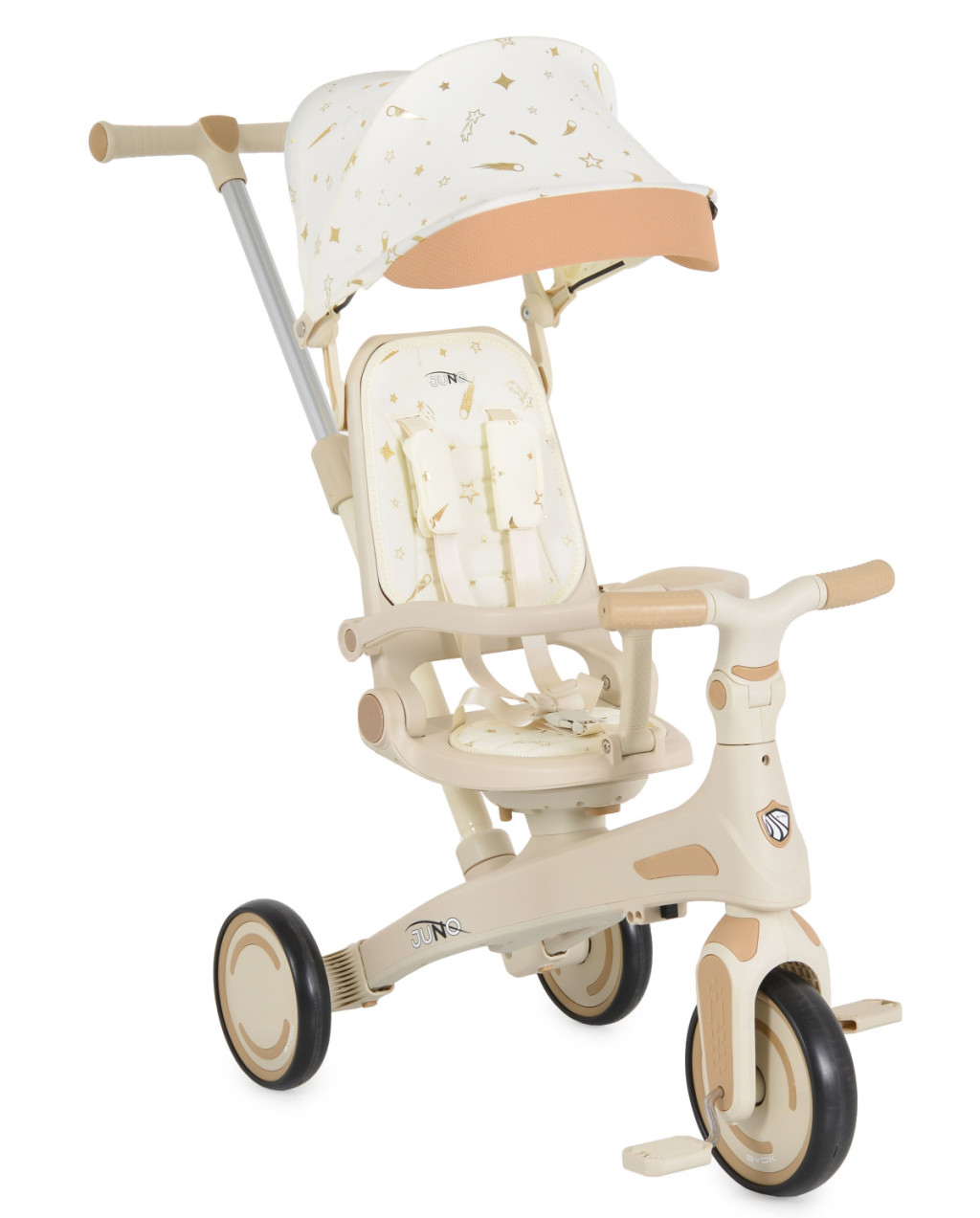 A Juno multifunkciós tricikli szülői felügyelettel együtt növekszik gyermekével, alkalmazkodva igényeihez és képességeihez. Alkalmas 12 és 60 hónapos kor közötti gyermekek számára, maximális súlya 25 kg. Három fő használati mód: