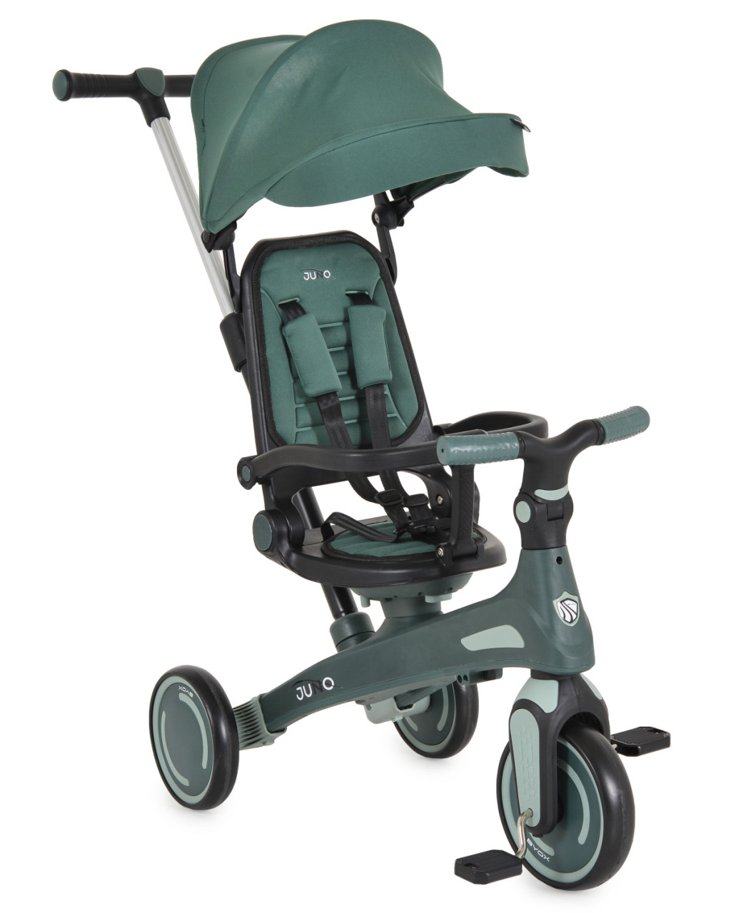 A Juno multifunkciós tricikli szülői felügyelettel együtt növekszik gyermekével, alkalmazkodva igényeihez és képességeihez. Alkalmas 12 és 60 hónapos kor közötti gyermekek számára, maximális súlya 25 kg. Három fő használati mód: