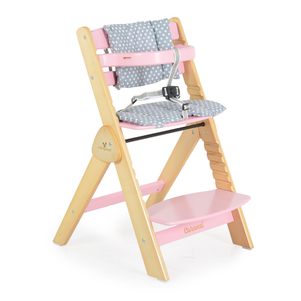 A Caramel fa etetőszék 3 ülés- és 6 lábtámasz-szinttel rendelkezik.