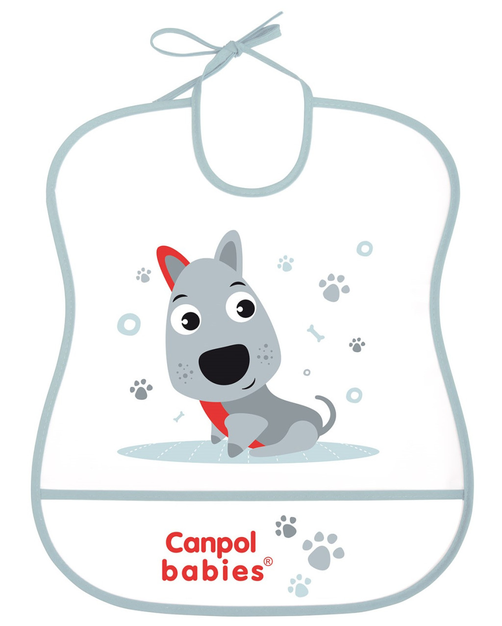 A Canpol (Cute Animals) Műanyag Előke tartós PEVA fóliából készült, védi a ruhákat étkezés közben.