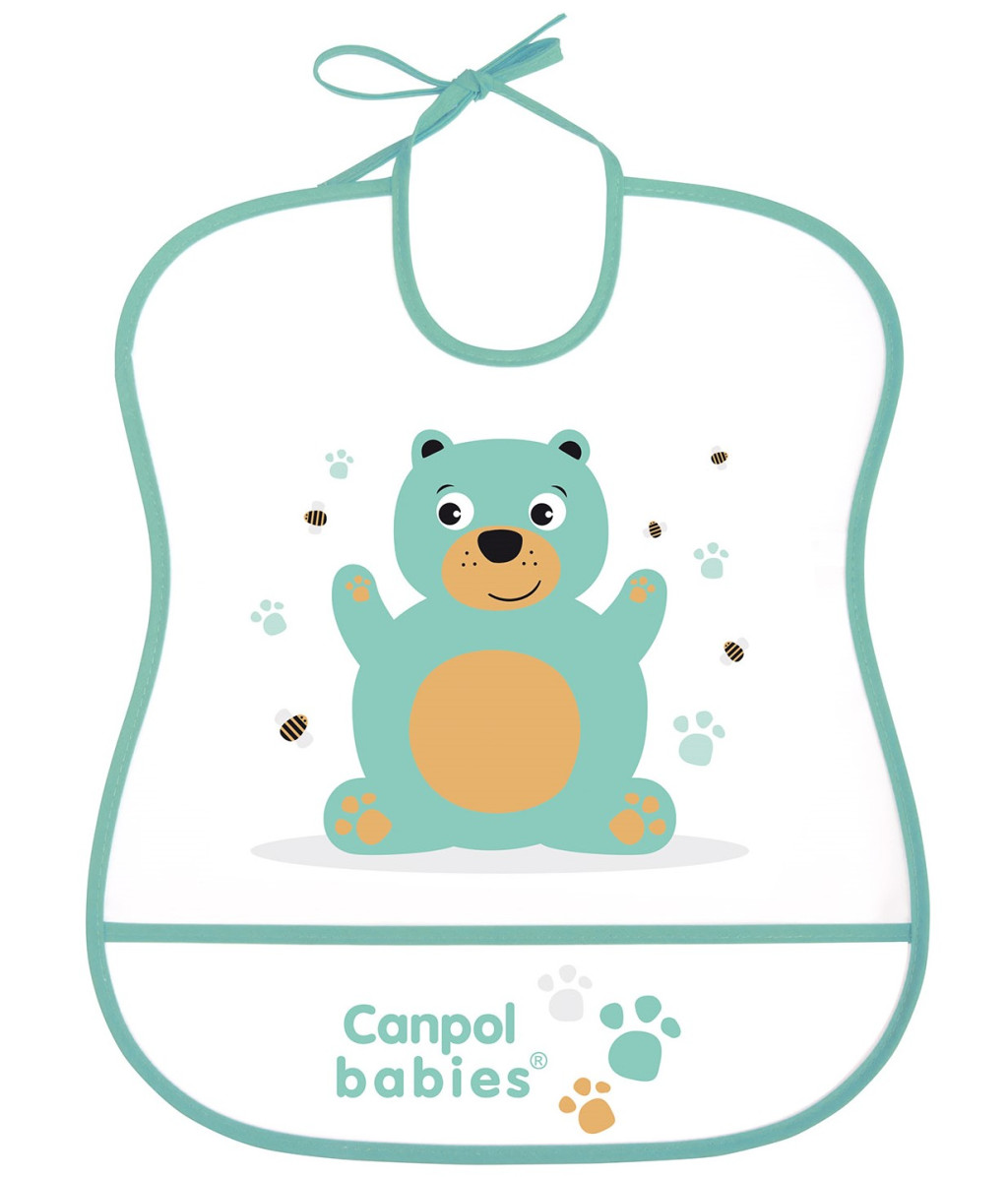 A Canpol (Cute Animals) Műanyag Előke tartós PEVA fóliából készült, védi a ruhákat étkezés közben.