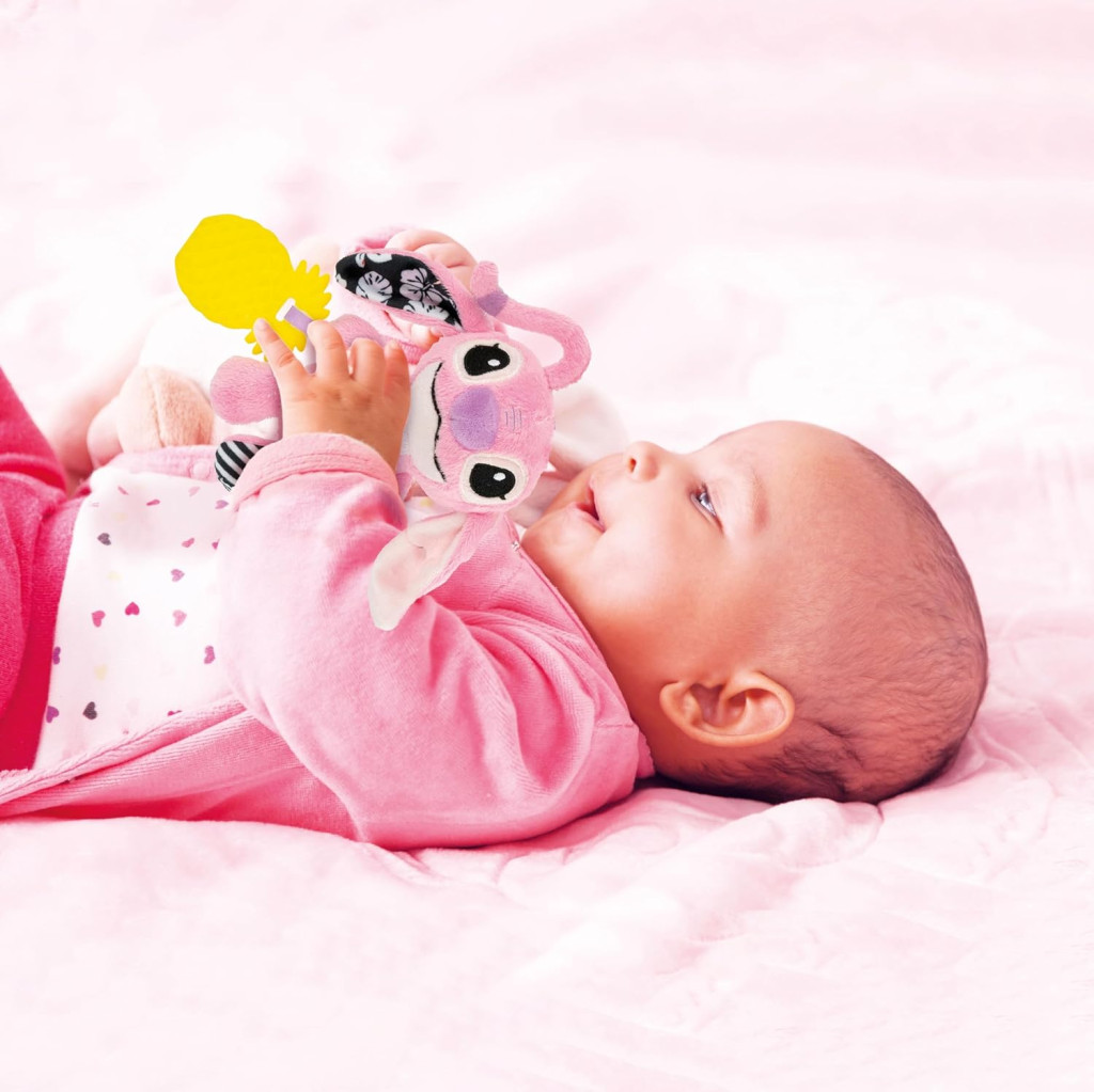 A Disney Stitch Angel plüss, rágókával egy igazán szerethető és praktikus babajáték, ami tökéletes társ már a legkisebbek számára is, 3 hónapos kortól.