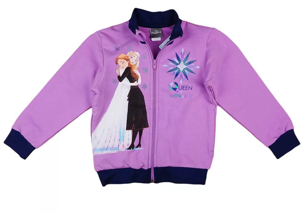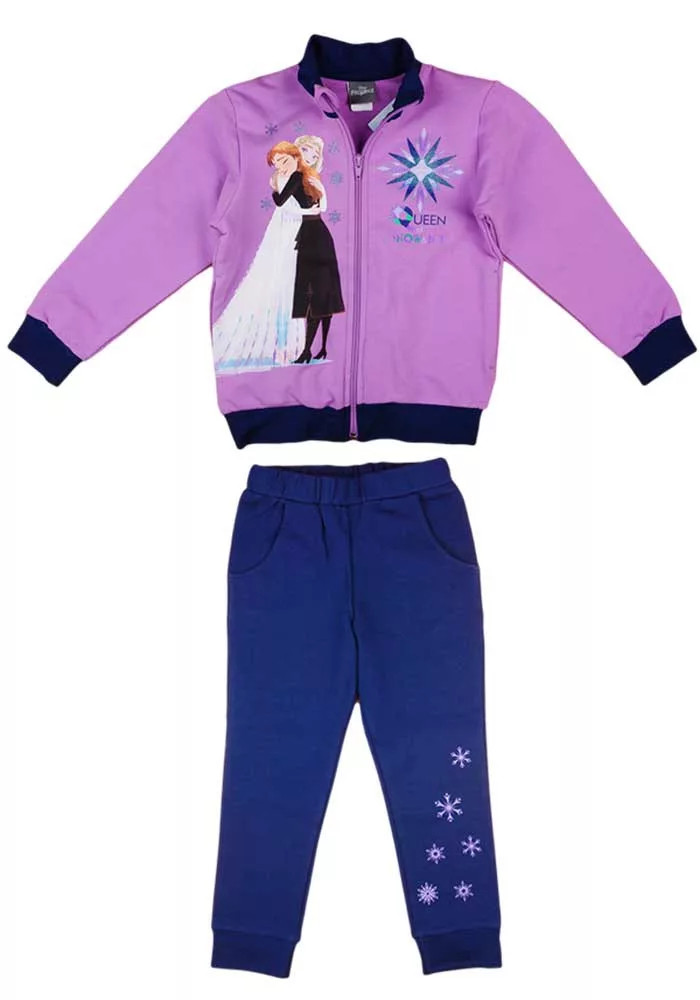 A szett tartalmaz egy cipzáros felsőt, melyen a Jégvarázs mese két szeretett karakterével, Elzával és Annával találkozhatsz, valamint egy kényelmes, gumírozott derékú szabadidőnadrágot.