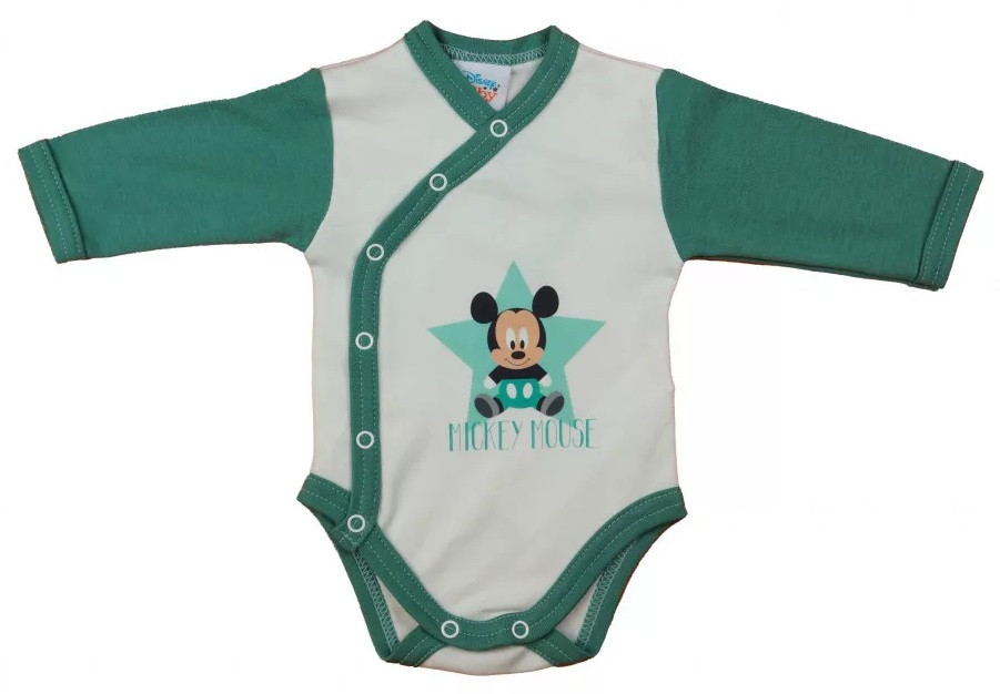 Disney Mickey elöl patentos hosszú ujjú body (68) - zöld