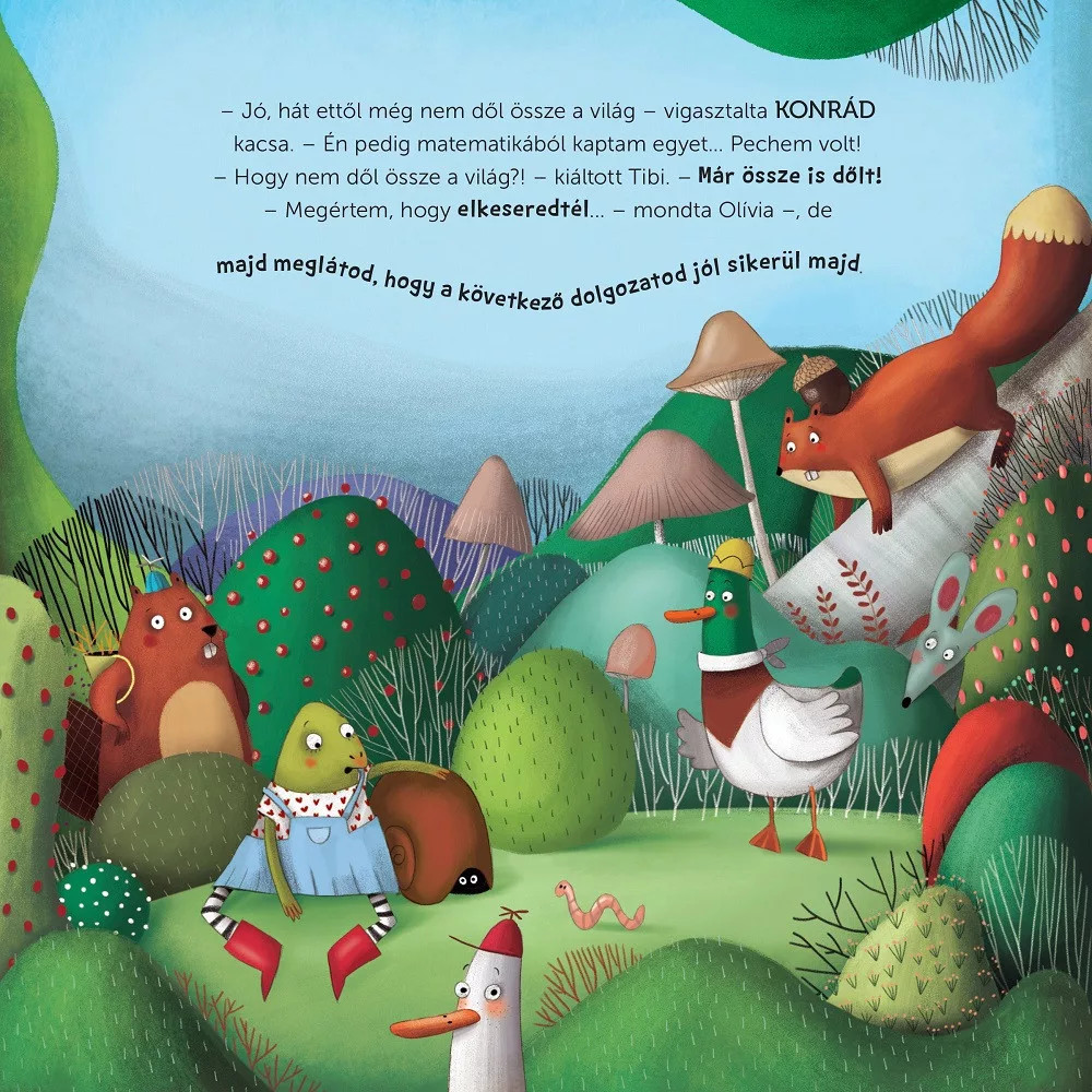 A történet középpontjában Tibi, a csiga áll, aki általában jó tanuló az iskolában. Azonban egy nap, amikor becsúszik egy egyes, teljesen összeomlik, és szorongani kezd. A félelem és aggodalom a hatalmába keríti, nem tud felülkerekedni a negatív érzéseken.