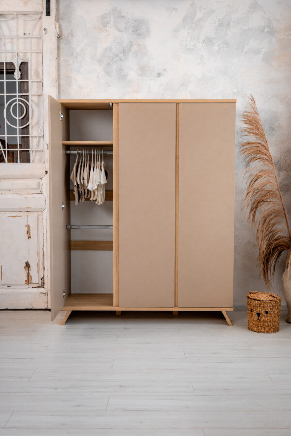 Igaz, hogy a nagyobb szekrény nagyobb helyet is foglal, cserébe rengeteg tárolási lehetőséget kínál. Az ajtók modern push-open technológiával működnek: fogantyú helyett egyetlen nyomásra nyílnak a beépített kilökő-szerkezetnek köszönhetően, ami letisztult, stílusos megjelenést és kényelmes használatot biztosít. Továbbá újszülött kortól akár felnőttkorig van lehetőség használni a szekrényt. Igény szerint további 3 db polccal is kiegészíthető.