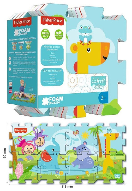 Ez a nyolc darabos szivacs puzzle egy kedves részletet jelenít meg a vadon élő állatokról rajzos formában. Ráadásul minden egyes puzzle elemen egy vagy több állat is helyet kapott, ami garantáltan kényelmes és a kicsik számára izgalmas játszó teret biztosit.