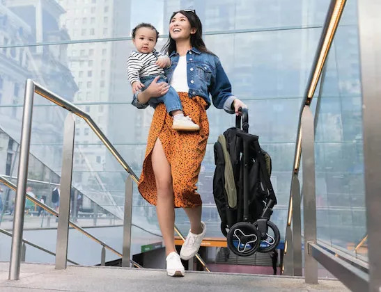 - A beépített összecsukózár segítségével a babakocsi praktikusan elpakolható összecsukott állapotban