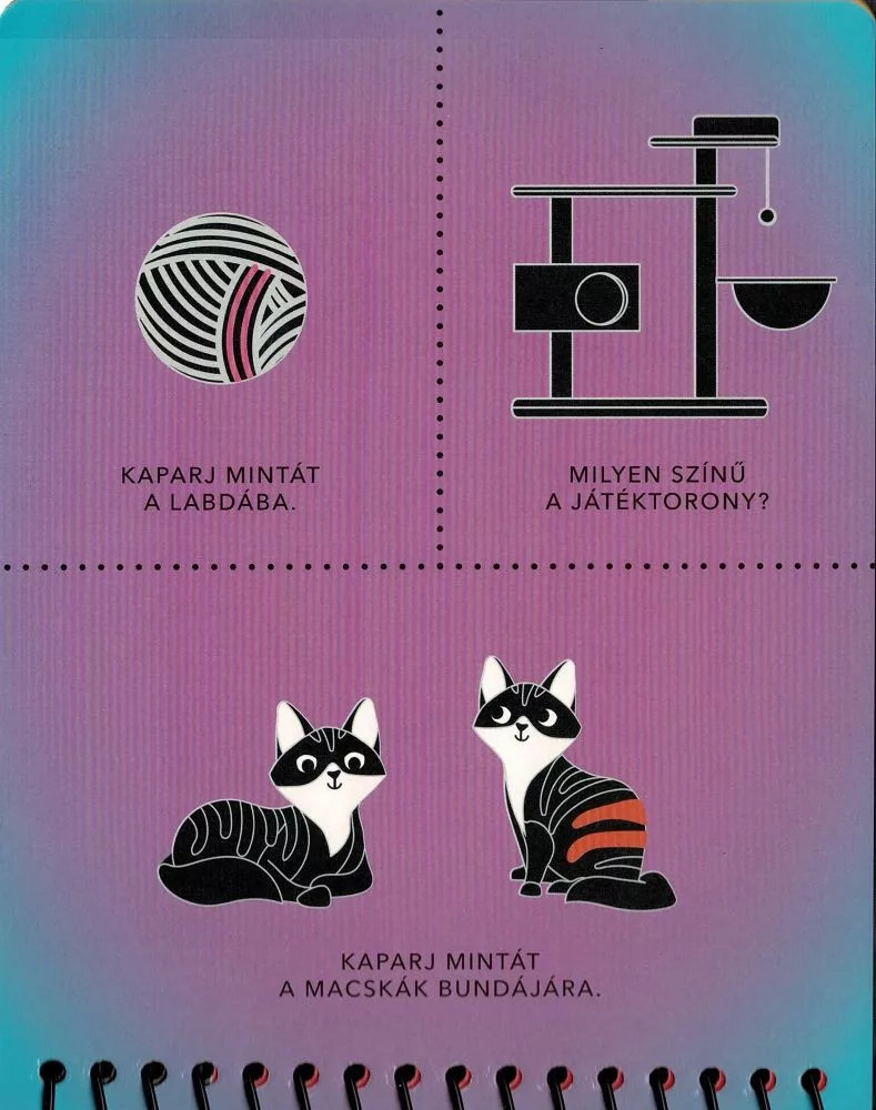 A füzet különböző feladatokat tartalmaz, mint például kutyaház mintázásavagy a hörcsögök ketrecének díszítése, amely órákon át tartó szórakozást biztosít. A sokszínű képek előbukkanása minden alkalommal újra és újra meglepetést tartogat, így a gyerekek nemcsak tanulnak, hanem élvezettel alkotnak is. Tökéletes választás otthoni időtöltéshez, utazáshoz vagy ajándéknak.