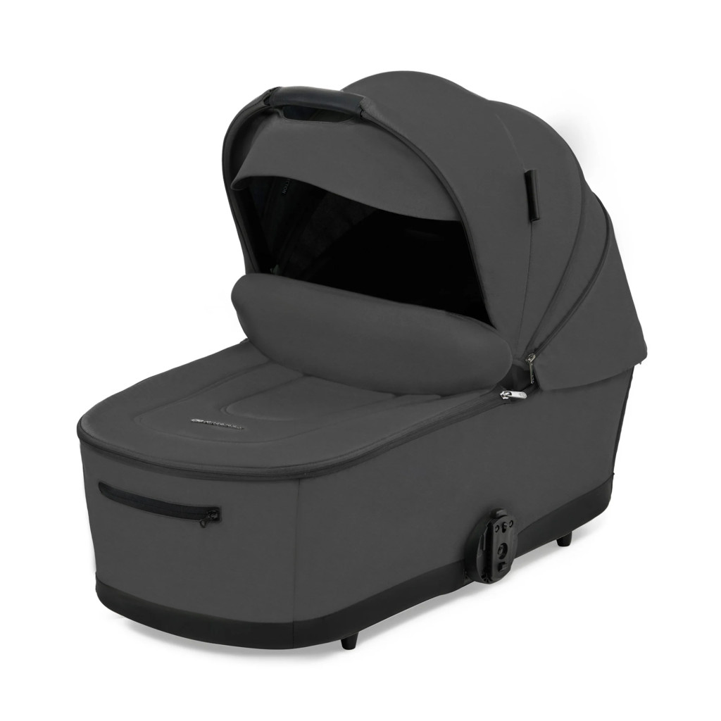 Tökéletes már születéstől kezdve A YOXI babakocsi a gyermekek igényeit szem előtt tartva lett tervezve. A mózeskosár tágas, puha matraccal és lábzsákkal van felszerelve a hűvösebb napokra. A napellenző szellőzőhálóval rendelkezik, amely egyúttal panorámás kilátást biztosít a hason fekvő gyermek számára a világra. A mózeskosár laposra hajtható.