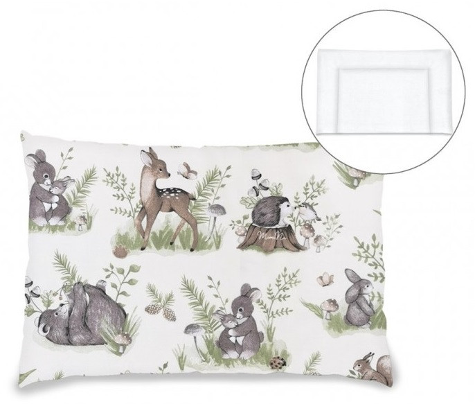 Lapos párna levehető huzattal 40x60 cm - Erdei barátok zöld