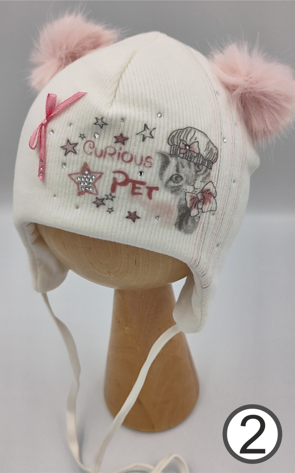 Marika téli sapka pamuttal bélelve (40) - kis cica ekrü
