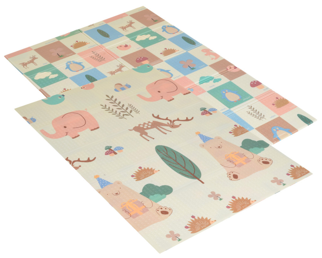 A játszószőnyeg mindkét oldalon vidám motívumokkal ellátott nyomtatással, csúszásmentes felületkezeléssel, nagyszerű szigeteléssel és hangszigeteléssel rendelkezik, vízálló, puha felületű, rugalmas, mégis méretstabil, összehajtható, és mindenekelőtt biztonságot nyújt a gyermekeknek játék közben.