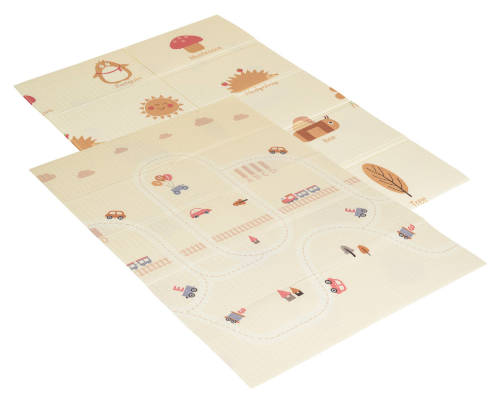 A játszószőnyeg mindkét oldalon vidám motívumokkal ellátott nyomtatással, csúszásmentes felületkezeléssel, nagyszerű szigeteléssel és hangszigeteléssel rendelkezik, vízálló, puha felületű, rugalmas, mégis méretstabil, összehajtható, és mindenekelőtt biztonságot nyújt a gyermekeknek játék közben.