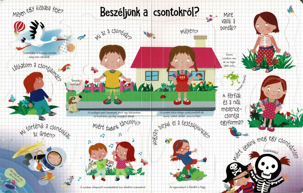 Miből áll a csontváz? Hogyan mozgunk? Mi történik a csontokkal az űrben? A gyerekek megtudhatják, hogyan támogatják csontjaink és izmaink a testünket, hogyan tartják egyensúlyban a mozgásunkat és milyen szerepet játszanak a fizikai aktivitásban.