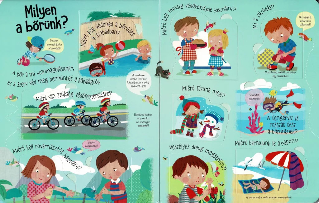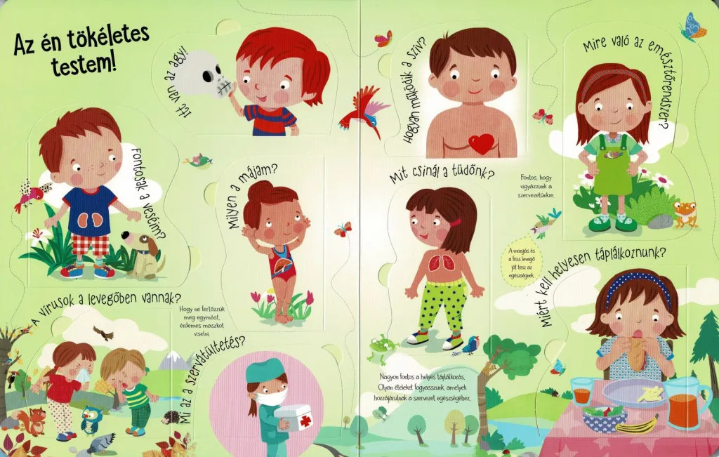 Ez a könyv nem csupán egy egyszerű ismeretterjesztő olvasmány, hanem egy interaktív kaland, amely lehetőséget nyújt a gyerekeknek arra, hogy megismerjék saját testüket és annak működését. A kihajtható ablakokkal és szemléletes illusztrációkkal készült kötet segít a kíváncsi gyermekeknek jobban megérteni a test felépítését és a benne zajló folyamatokat.