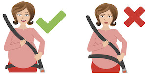 · csökkenti a magzat lehetséges sérülésének kockázatát a hasban, pl. erős fékezés során,