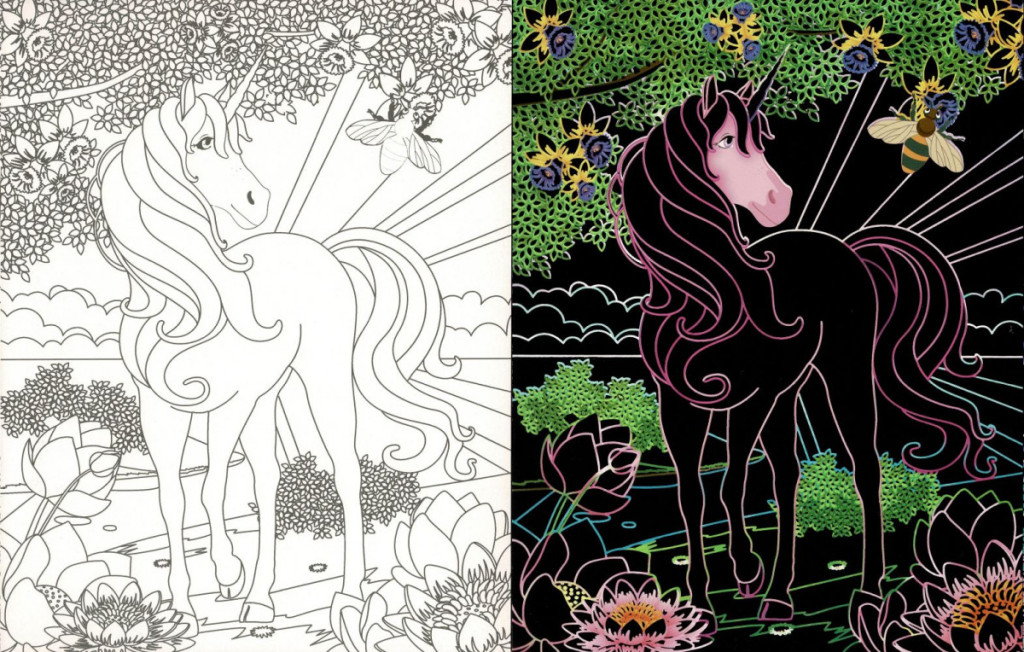 Fedezd fel az unikornisok csodálatos világát! A mellékelt pálcával kapard le a fekete réteget, és meglátod, milyen csodás, színes világ tárul eléd a lapokon! Emellett a színezésre váró oldalakon te magad is létrehozhatod a saját verziódat. Ha kész a mű, akár ki is emelheted a lapot, és odaadhatod egy barátodnak...