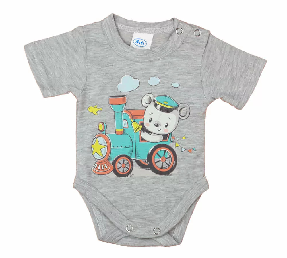 Rövid ujjú baba body cuki Vonatos mintával (80) - szürke