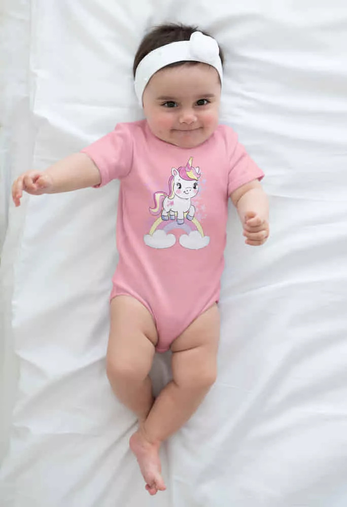 Rövid ujjú baba body - púderrózsaszín unikornis (74)