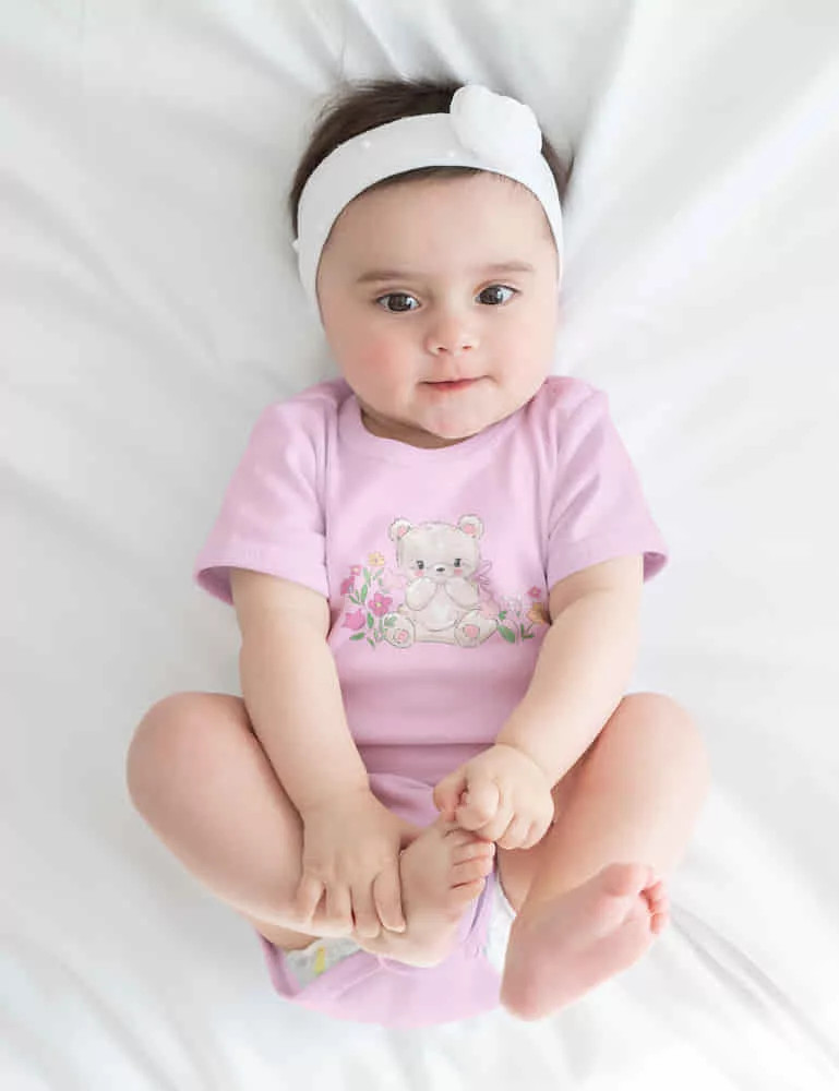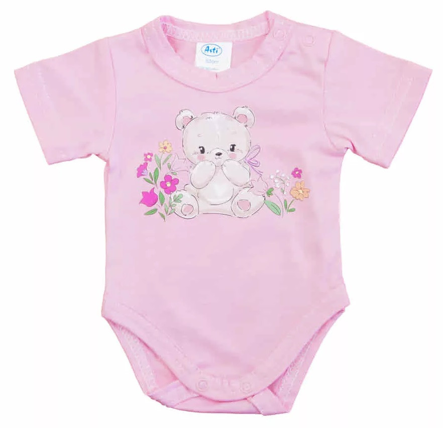 Rövid ujjú baba body - rózsaszín maci (56)