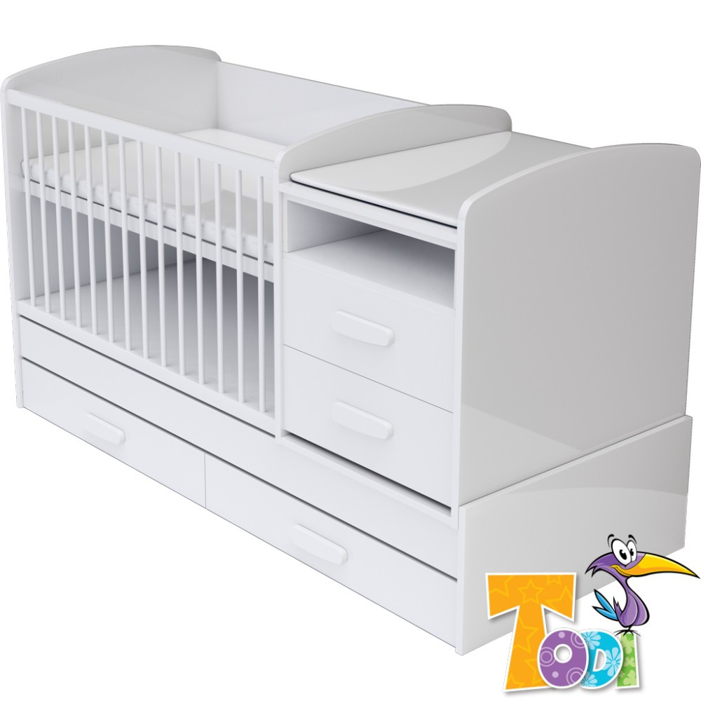 Todi Bianco kombi kiságy pelenkázó komóddal - bordázott fehér