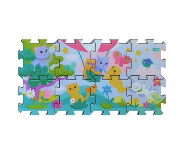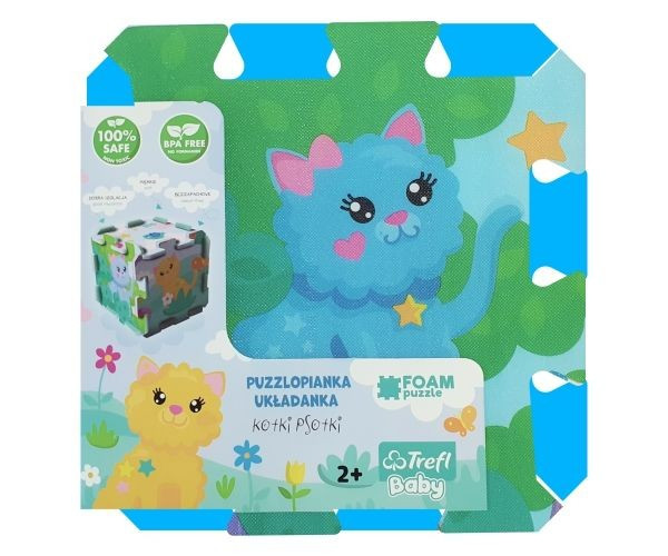 A szivacs puzzle-ök, más néven habtapik rendkívül népszerűek főként a kisgyermekes anyukák körében, ugyanis igen sokszínűen használhatóak. A jókora puzzle elemek kellően puhák ahhoz, hogy járólapot készítsünk belőle a járni tanuló kisgyerekeknek, valamint falvédőként is használhatjuk. Az puzzle alkotórészei akár 3 dimenzióban kockaként is összerakhatóak. Ez a tündéri 8db-os szett kedves kis cicákat ábrázol, mely biztosan elnyeri majd a gyerekek tetszését. Az élénk színű puzzle-ük játékra sarkallják a kicsiket és a puzzle segítségével fejleszthetik gondolkodásukat, térlátásukat és kézügyességüket is. Használata két éves kortól ajánlott.