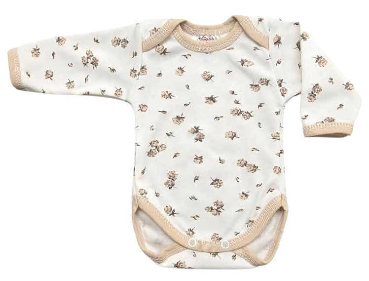 Vaganza Hosszú ujjú, békanyakú body - Drapp Rózsák (50)