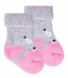Yo! Baby frottír zokni 6-9 hó - szürke/rózsaszín maci