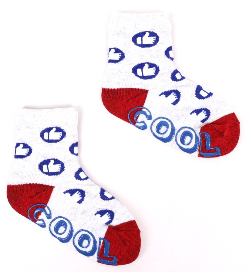 Yoclub ABS csúszásgátlós zokni 17/19 - szürke/kék "like" mintával