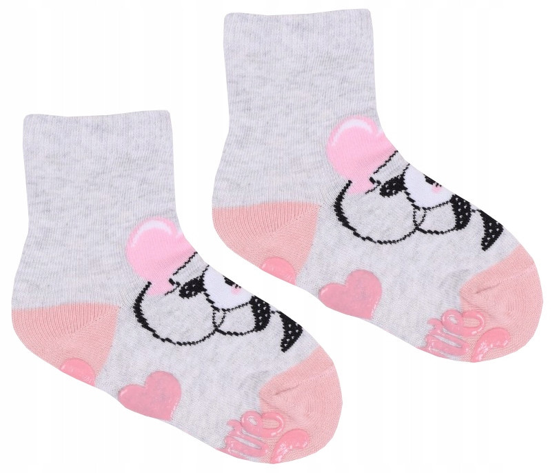 Yoclub ABS csúszásgátlós zokni 17/19 - szürke/rózsaszín/panda