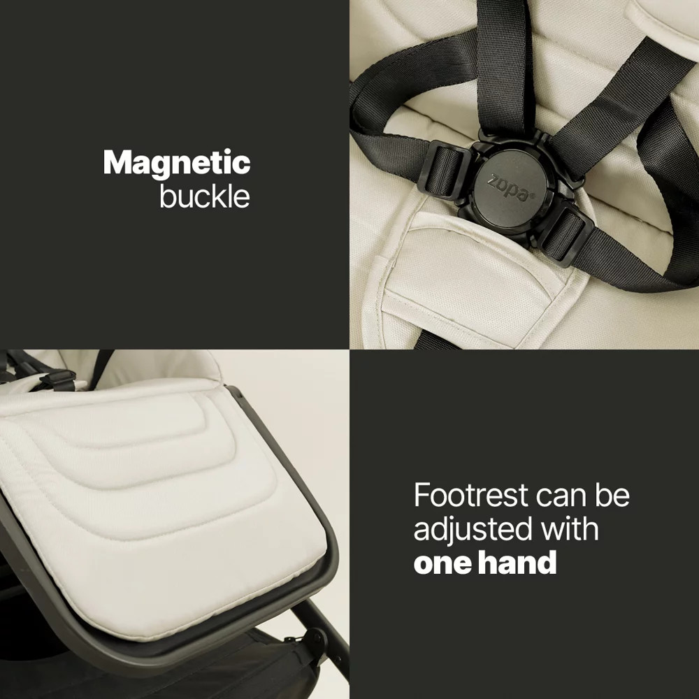 Az extra hosszú kupola független a hordozókar állásától, így a hordozókart használhatja anélkül is, hogy visszahajtaná a kupolát - vagy fordítva. A kupola megvédi a gyermeket az erős napsütéstől, széltől és enyhe esőtől is. Az ergonomikus hordozókar megkönnyíti a szállítást. A 3 pontos biztonsági övek egyszerű rögzítést tesznek lehetővé, a könnyen állítható fejtámla pedig együtt nő a gyermekkel - miközben az övek magassága is automatikusan igazodik. A maximális kényelem érdekében a fejtámla memóriahabbal van párnázva. A hátoldalon szellőzőrendszer található. A kényelmet a kiváló minőségű újszülött betét biztosítja, amely akár 75 cm-es magasságig használható.