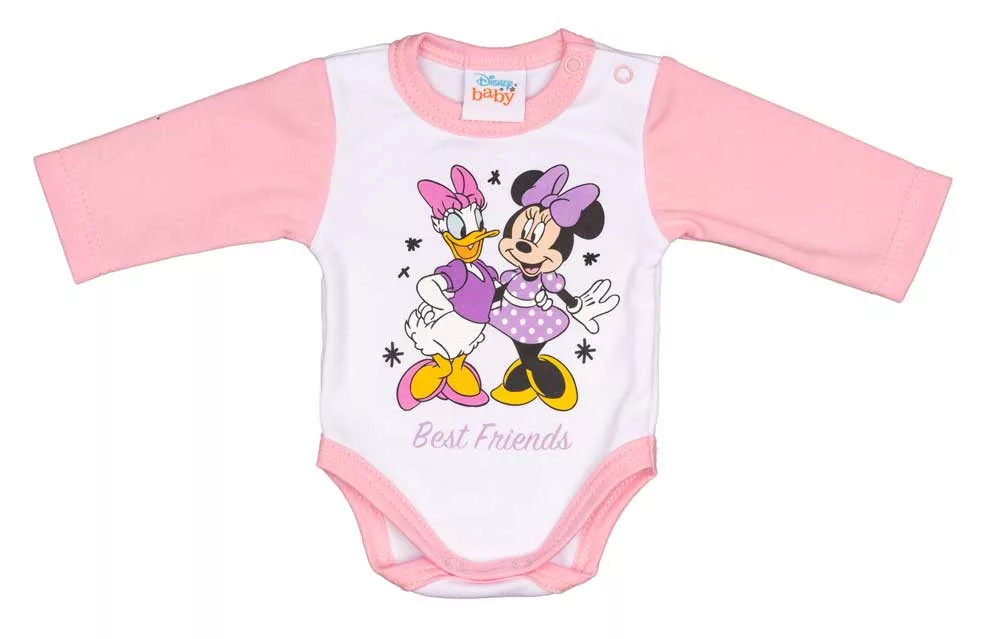 A Disney Minnie mintával nyomott hosszú ujjú baba body a kisbabák ruhatárának praktikus, nélkülözhetetlen kelléke.