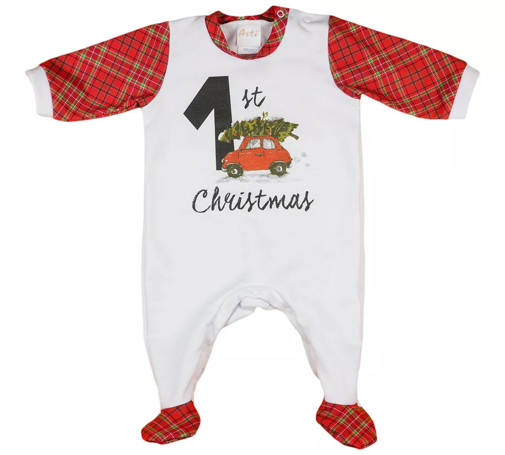 Karácsonyi "1st Christmas" belül bolyhos hosszú ujjú rugdalózó(68)
