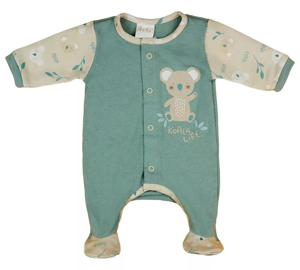 Elöl végig patentos baba rugdalózó. Koala mintával, elöl patentos hosszú ujjú pamut rugdalózó alapdarabja, mert lehetővé teszi a gyors és könnyű pelulscserét. Jól mosható, szín- és formatartó anyagból készült.