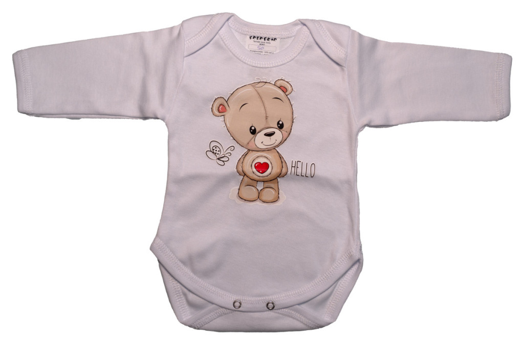 Babastar hosszú ujjú pamut body (56) Szívecskés maci