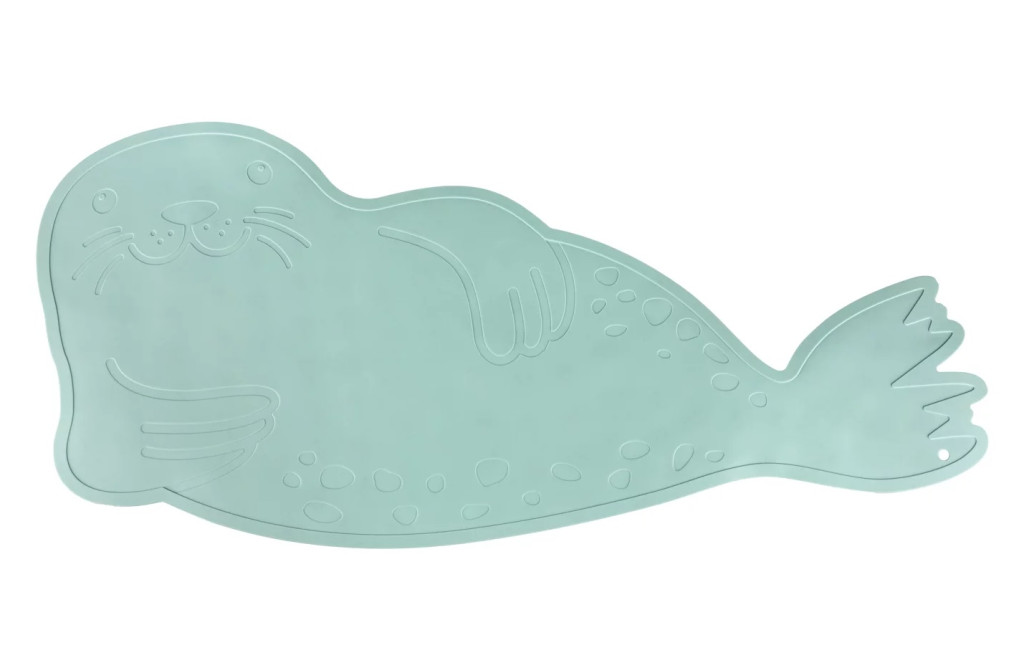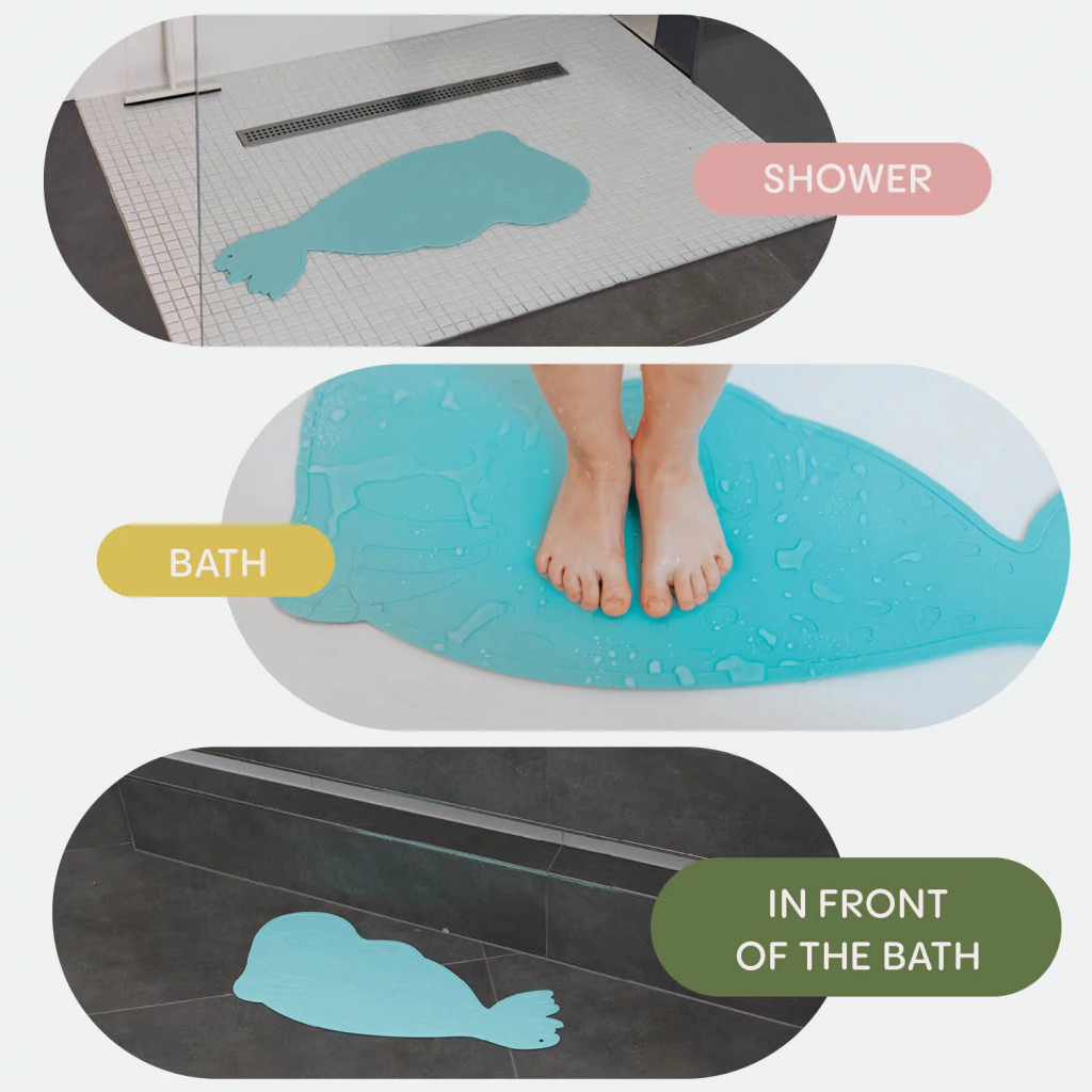 Gondoskodjon gyermekei biztonságos fürdéséről szilikon csúszásgátló alátét, amely egy aranyos tömítés formájú.