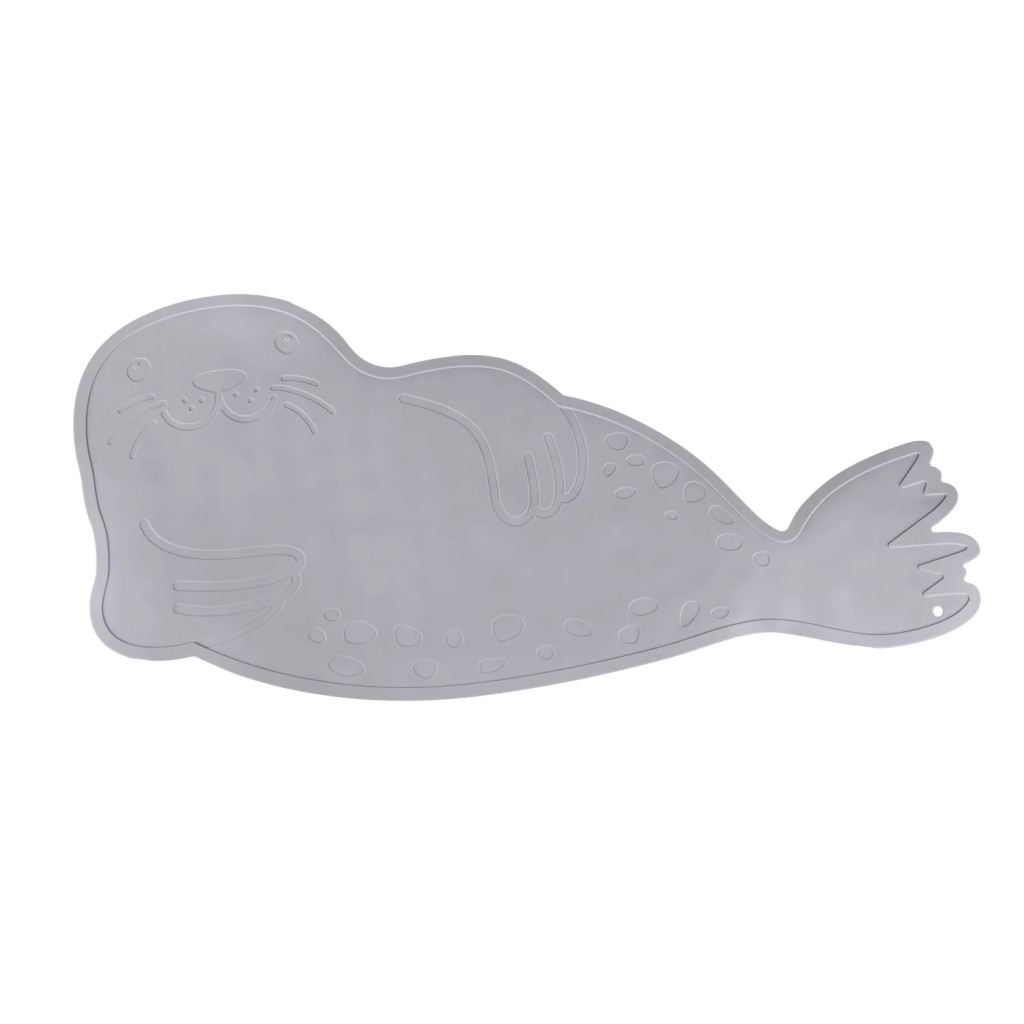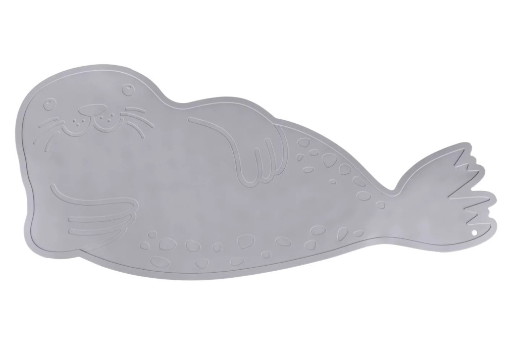 Gondoskodjon gyermekei biztonságos fürdéséről szilikon csúszásgátló alátét, amely egy aranyos tömítés formájú.