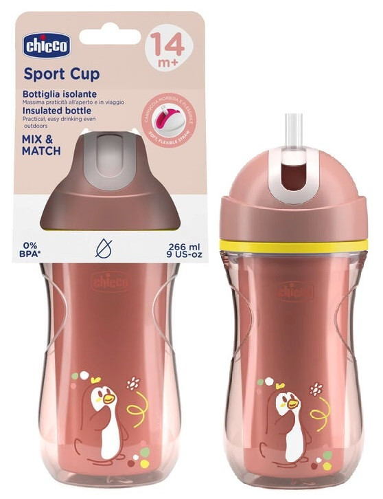 Chicco Sport Cup duplafalú, szívószálas itatókulacs 14m+ pingvin
