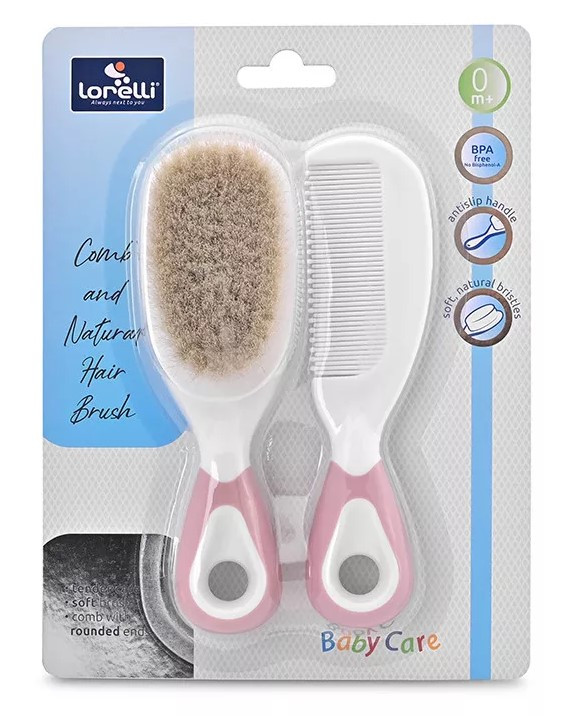 Lorelli Fésű és hajkefe természetes sörtékkel - blush pink