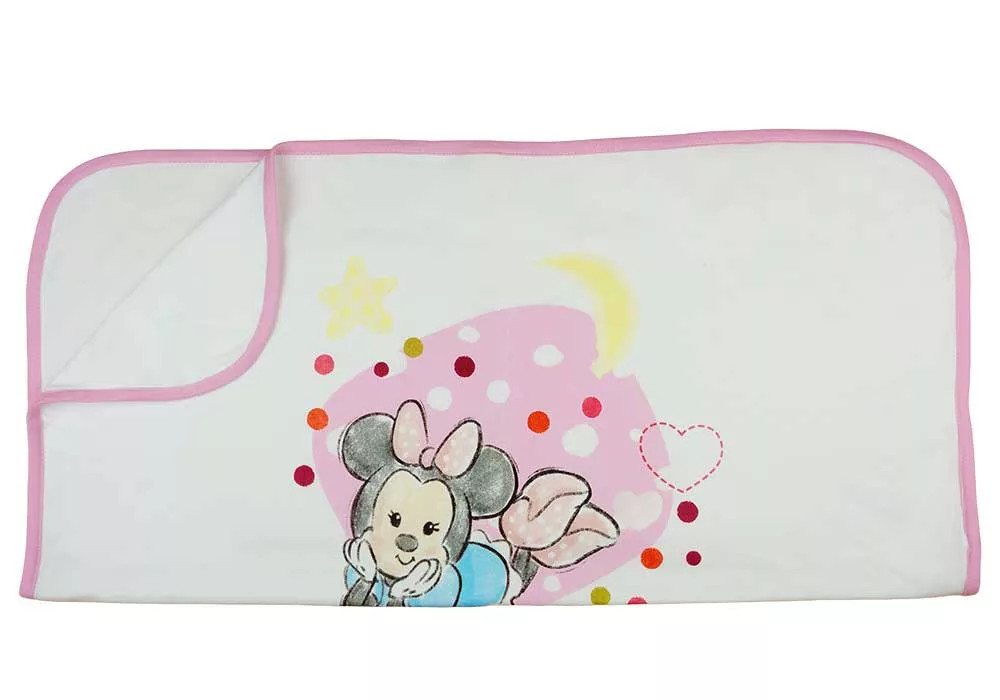Puha, bababarát, minőségi pamut anyagból készült ez a babatakaró, ami minden évszakban jól jön. Anyaga jól bírja a mosást, könnyen kezelhető, így éveken át használhatjuk. Vidám Minnie egér mintával készült, hogy a gyerekek is szívesen beleburkolózzanak.