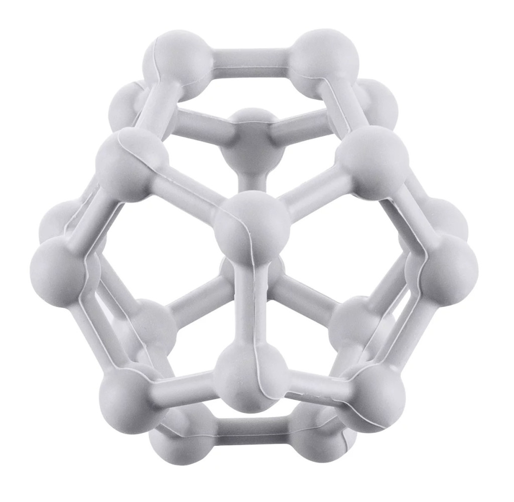 Élelmiszeripari szilikon, puha és rugalmas anyag, kellemes tapintású, kedvenc játék, íny stimuláció - ez a szilikon rágóka Atom.
