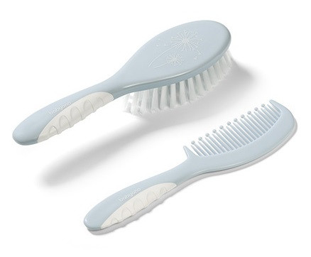 A szett tartalmaz egy fésűt lekerekített fogakkal és egy hajkefét, ami szintetikus szőrből készült.