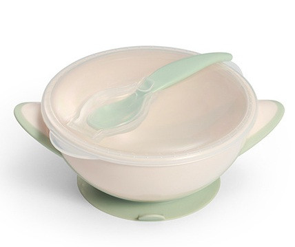BabyOno tapadós fedeles tányér kanállal - zöld