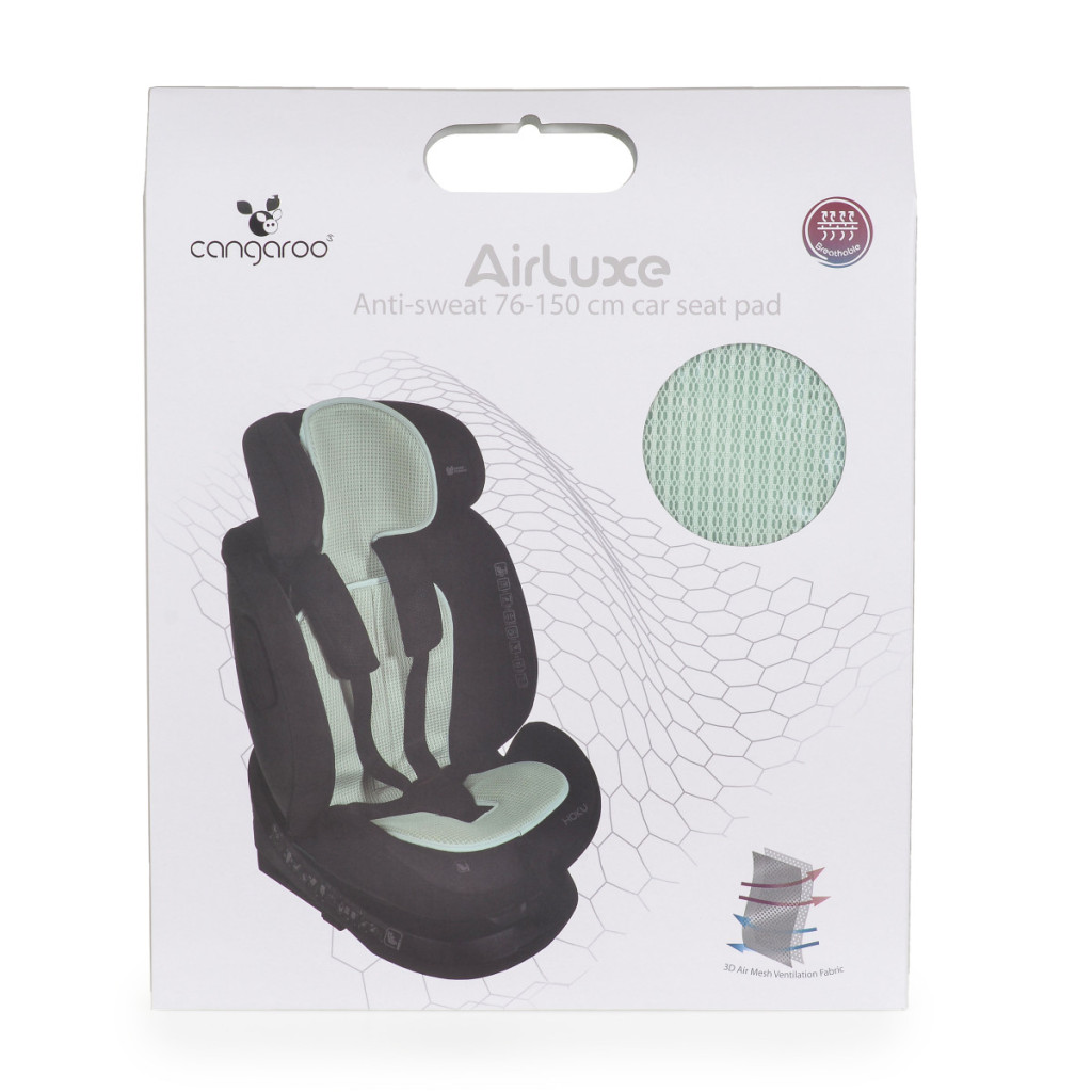 Speciális 3D-s anyagból készült, 100% poliészterből, 1,3 cm vastag, 90% levegőt tartalmaz, a betét javítja a légáramlást a gyermek és az autósülés között, így kényelmet és frissességet biztosít az utazás során.